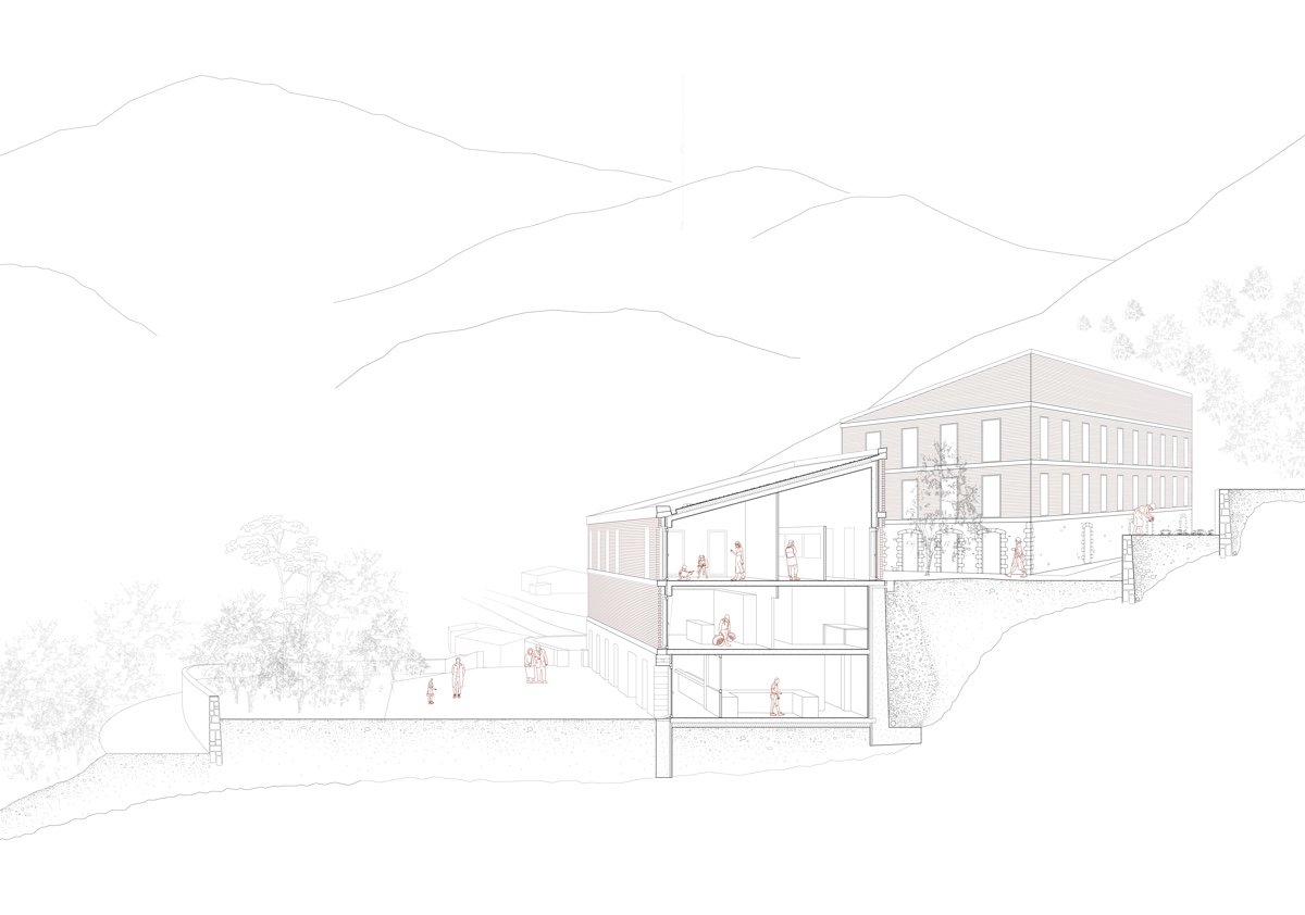 ![]() Clara CuninLes terres coopératives de la Montée d’AgaisenRévéler les qualités d’un site agricole abandonné pour créer des liensSospel est une petite ville de moyenne montagne, nichée dans les Alpes Maritimes. Elle a prospéré grâce à diverses pratiques agricoles. Son essor économique est stoppé dans les années 1950 en raison d’un exode rural massif entraînant l’abandon des exploitations agricoles. Les terres coopératives de la Montée d’Agaisen vise à valoriser les sites agricoles. Le site existant s’efface dans son environnement, bordé par des flux contemporains auxquels il ne répond plus. Il s’agit de reconnaître les différents éléments qui le composent : un hameau, une oliveraie sur des restanques. Le projet ouvre un dialogue direct entre l’espace architectural et l’environnement naturel par l’emploi de matériaux locaux, supports de la conception bioclimatique : la pierre, la terre cuite, l’eau. Il propose une agriculture durable en créant une interdépendance entre l’existant et le vivant, entre le figé et le mouvement. Il agit non seulement comme réhabilitation d’un lieu, mais aussi comme revitalisation d’une communauté, valorisant son lien avec la terre et son héritage agricole.