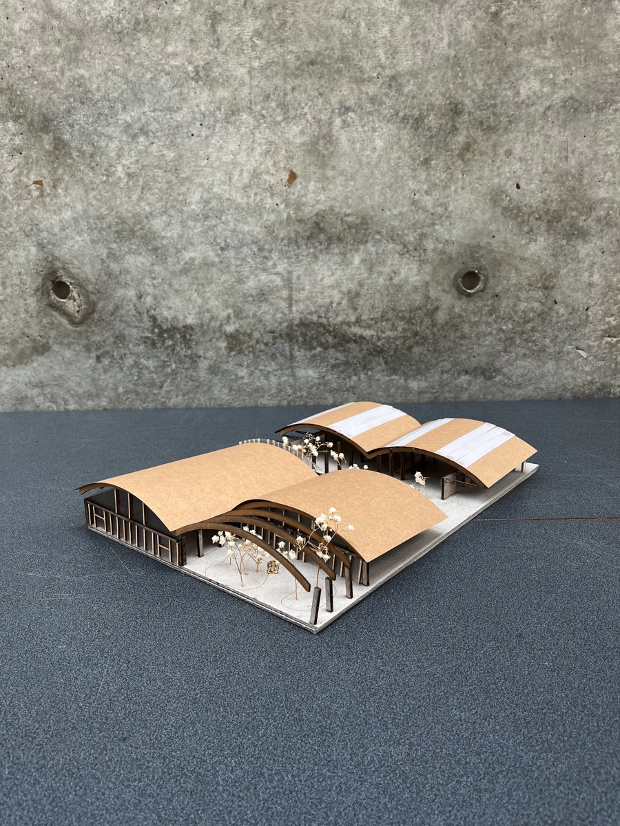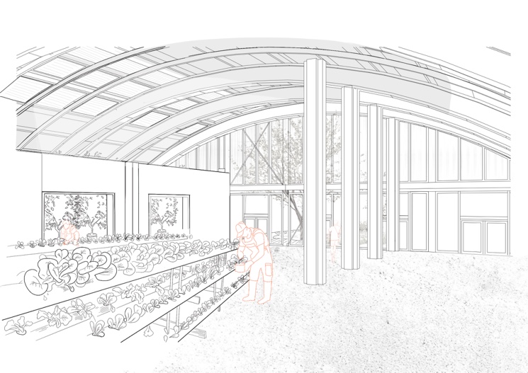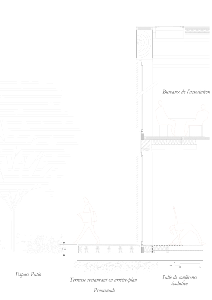 ![]() Lucile RouxLe parc solidaire et maraîcher de Drap-La TrinitéPour un retour aux usages des berges du Paillon dans une ère post-carboneLa vallée du Paillon et ses berges, autrefois agricoles, se sont vues recouvrir de bitume depuis le début des années 1980. La commune de La Trinité, banlieue de la métropole de Nice, est aujourd’hui un terrain imperméable. L’imaginaire projeté mène en 2044, vers un retour aux usages agricoles passés, qui s’entremêlent avec les enjeux de société. Une ligne de tramway s’arrête à la nouvelle station du quartier enclavé de logements sociaux des Chênes Verts. Les 4,8 hectares de territoire sont renaturés sous différentes formes : renaturation sauvage dans les zones inondables par le Paillon, jardins partagés, parc urbain. La réhabilitation douce d’une ancienne halle de bus existante accueille un programme social et maraîcher. Le dialogue entre le béton et la légèreté du bois est établi par deux types d’interventions constructives : greffe légère valorisant la structure massive du bâtiment industriel existant et création d’espaces grâce à une logique de “boîte-dans-la-boîte”. Le site est empli de vie : médiation et culture dans une bibliothèque connectée à la halle d’exposition, agriculture dans les serres maraîchères au Sud de la Halle, restaurant de cuisine locale et raisonnée.