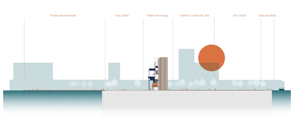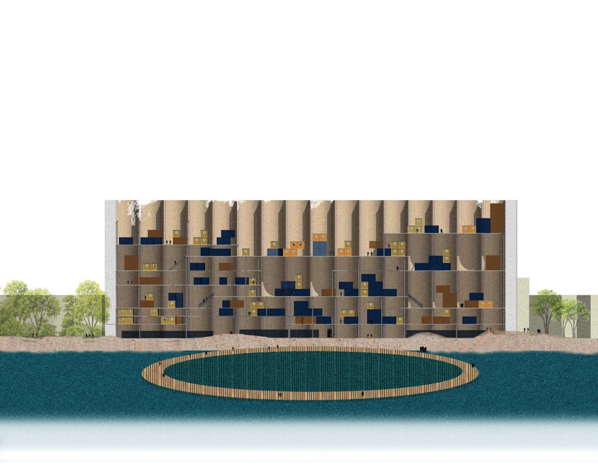 ![]() Jennifer El KhanjiBeyrouth et après ?Les ruines symboles de résilience : faire de la tragédie une force du renouveauBeyrouth et après ? se concentre sur le port de Beyrouth, marqué par l’explosion du 4 août 2020. Beyrouth est un symbole du temps ralenti, en contraste avec l’introduction des technologies qui accélèrent le rythme de vie. Comment transformer ce site dévasté en un symbole de renouveau, respectant la mémoire des événements tragiques et répondant aux besoins contemporains ? L’objectif est de revitaliser le port en mettant en valeur les ruines, notamment les silos de grains, et en réaménageant le cratère en promenade mémoriale. Les silos de grains sont renforcés par une structure métallique intégrant des conteneurs habitables. Le cratère est transformé en une promenade flottante, offrant un espace de recueillement. Le projet encourage les transports doux, réintégrant le port dans le tissu urbain. Des pratiques durables sont intégrées, notamment le réemploi des matériaux présents sur le site. Les structures sont flexibles et réversibles pour accueillir commerces et loisirs selon les besoins des communautés.