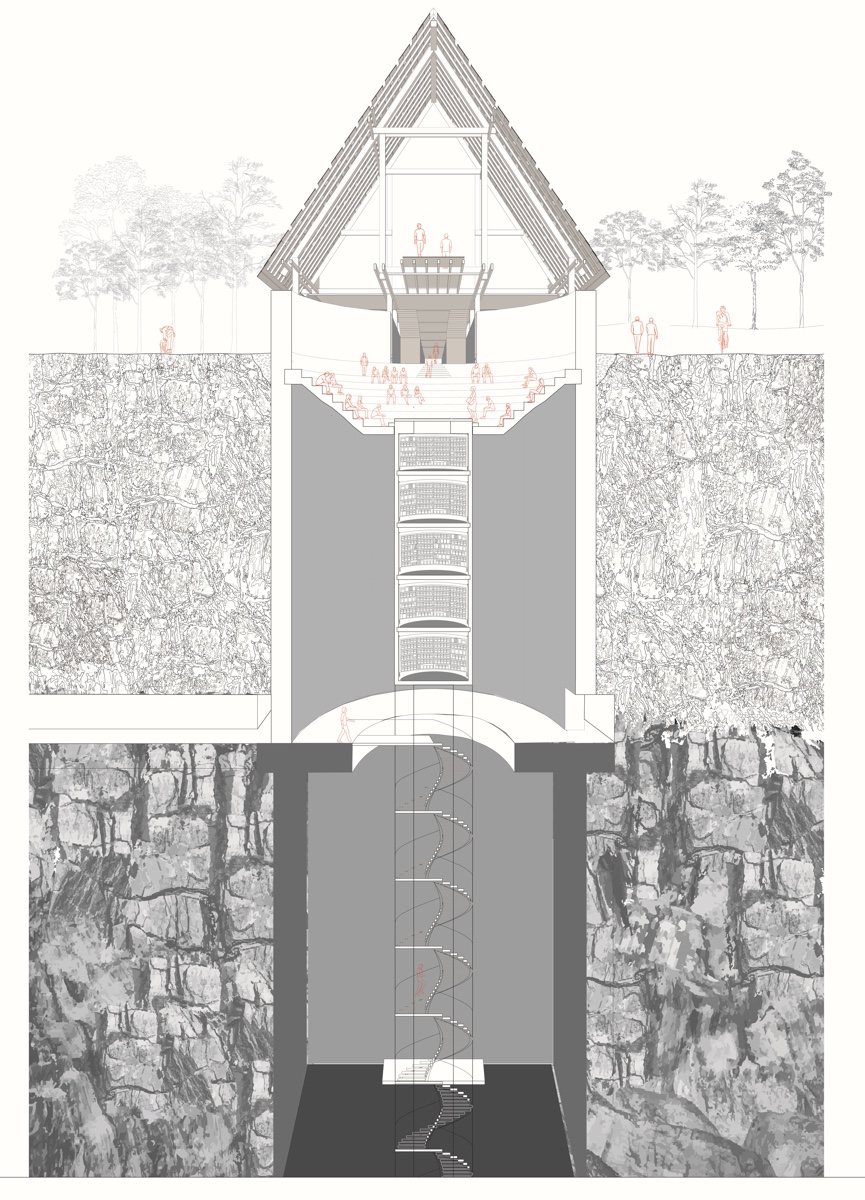 ![]() Sofia HidoucheGermes de lutteLa Maison de semences paysannes des Deux RhôneL’île de la Barthelasse, située à Avignon, est le théâtre d’une lutte contre l’accaparement industriel des terres agricoles. Germes de lutte constitue le levier d’une agriculture plaçant le soin et le commun au centre. La graine a constitué un enjeu dans l’industrialisation de l’agriculture puisque l’État a commencé par confisquer la semence aux paysans au bénéfice des industriels en 1943. D’autre part, il s’agissait de s’accrocher aux résistances in situ, s’incarnant dans les digues fragiles construites par les habitants, dans un contexte où le pouvoir se manifeste dans l’infrastructure massive des forts ancrés dans les rochers alentour et des barrages. Le projet prévoit l’allongement des digues à la surface et la profondeur d’une roche mère oubliée. Cela consiste ainsi en une longue maison de semences paysannes (archétype du grenier antique) reposant sur une banque de semences enterrée pour reposer sur la solide roche enfouie.