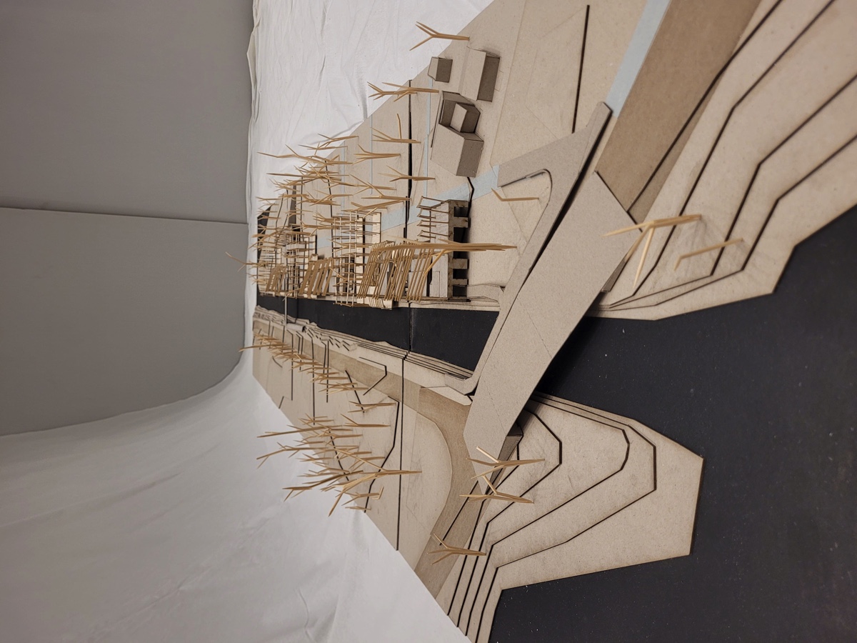 ![]() Emilio WattelUn archipel rhodanienAvignon, Villeneuve, la Barthelasse et leur Rhône : un Archipel territorialL’Avignon rhodanien est un territoire fragmenté, par le Rhône et l’île de la Barthelasse puisqu’elle divise Avignon de Villeneuve-lès-Avignon. Ces deux villes ont un passé complexe qui a pour conséquence une forte distinction socio-économique, culturelle et historique. L’île de la Barthelasse est majoritairement un espace agricole. Cette ruralité interrompt le tissu urbain entre les deux villes. Un archipel rhodanien consiste à unir Avignon et Villeneuve-lès-Avignon sans interrompre le fonctionnement agricole de l’île, au moyen d’un canal équipé dans l’île de la Barthelasse qui laissera passer des navettes fluviales. Cette intention urbaine est accompagnée d’un programme architectural. Un camping ouvert permet aux populations de se rencontrer. L’architecture longe le canal. Elle offre des équipements pour le camping, des espaces de loisirs et des logements saisonniers. Le but est de profiter du paysage unique pour rapprocher les différents îlots et pour créer un véritable archipel urbain.
