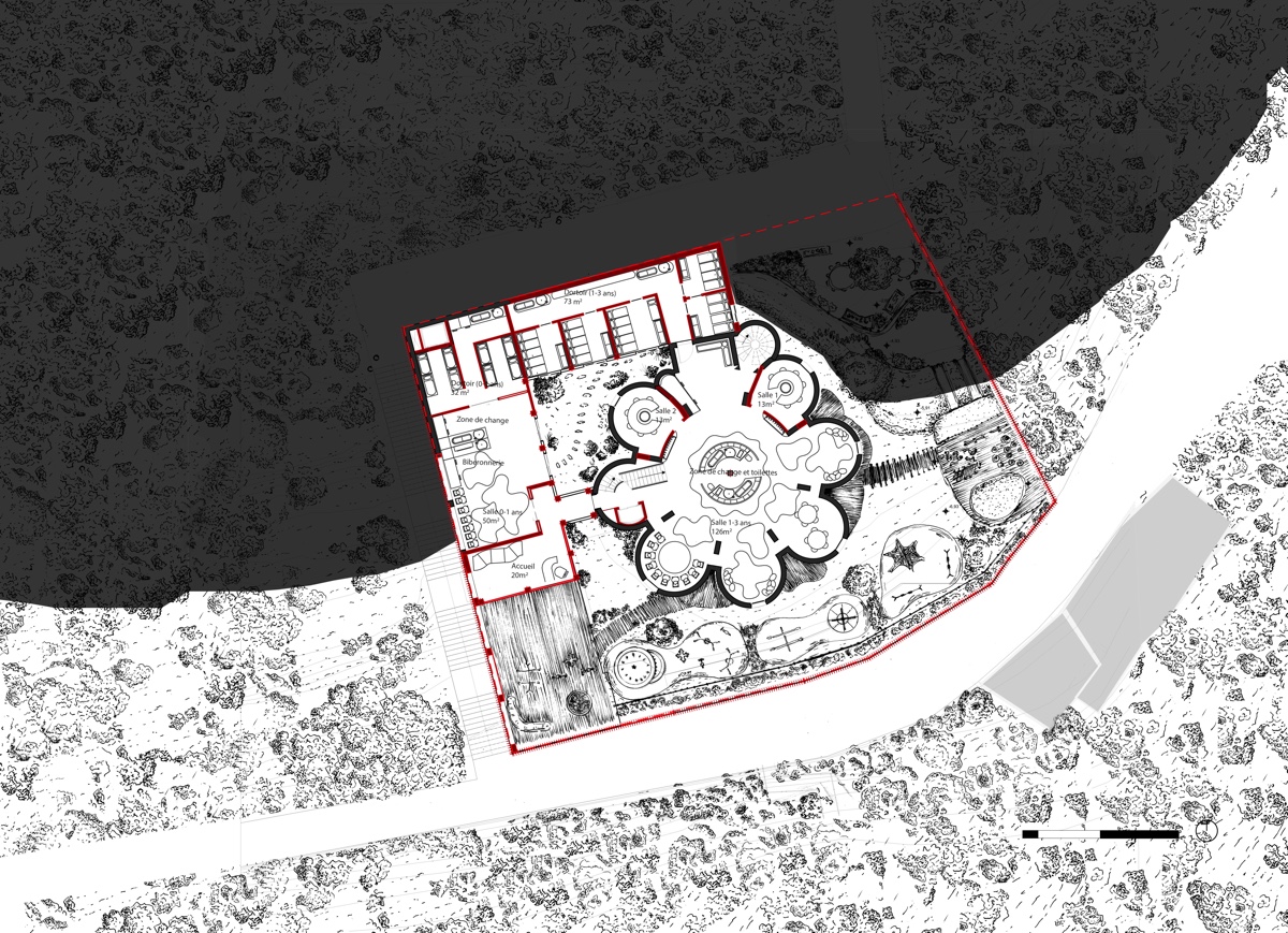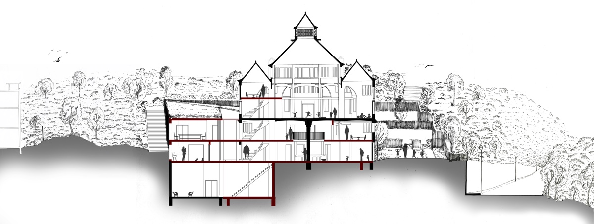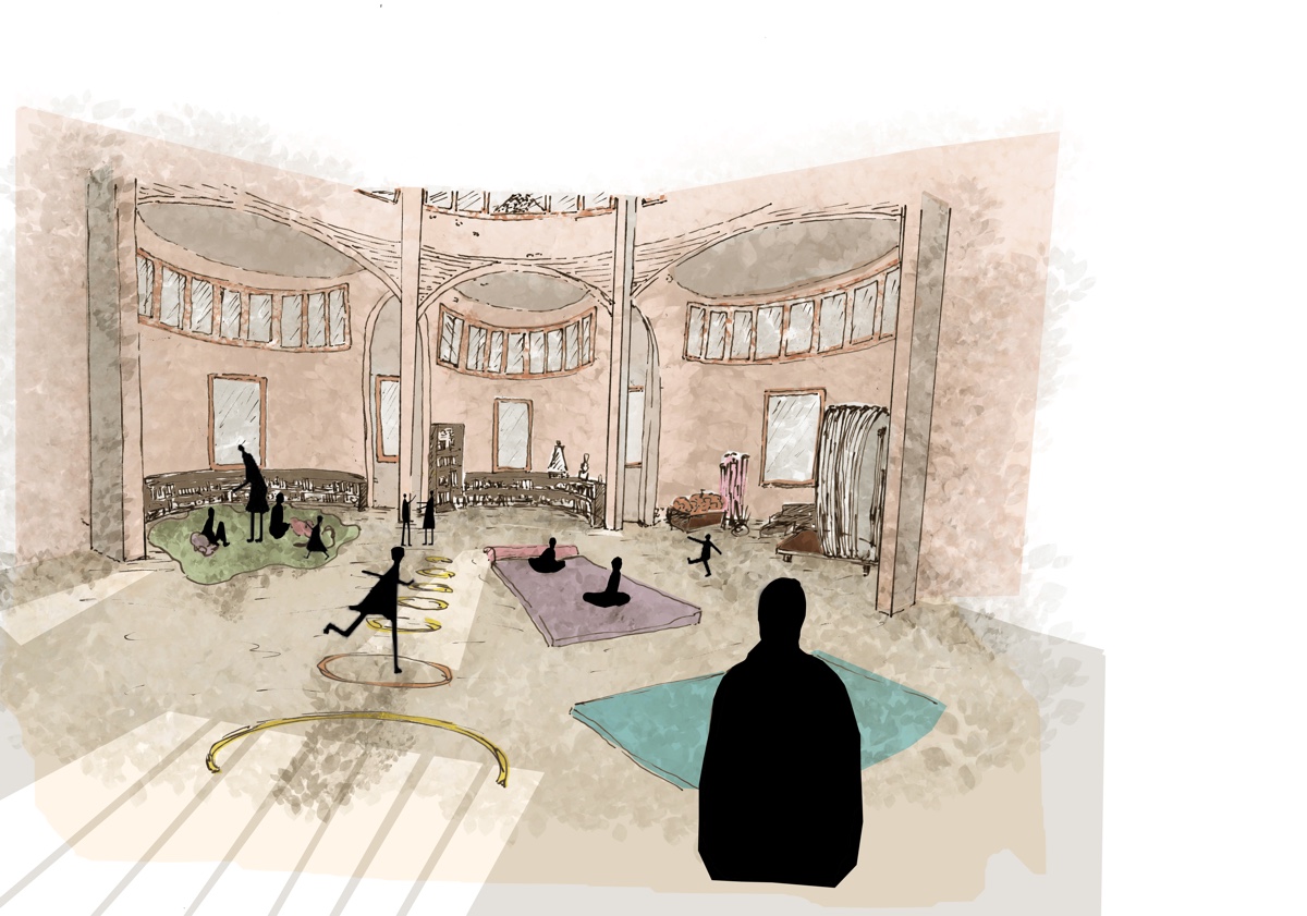 ![]() Andrea Arellano MendozaGrandir dans la florReconversion de la laverie du sanatorium del Tibidabo en complexe scolaireVictor Hugo écrit que, jusqu’au 15e siècle, l’architecture est le principal registre de l’humanité. Les constructions humaines, allant des foyers aux écoles et hôpitaux, ont toujours été nécessaires pour répondre aux besoins fondamentaux de sécurité, santé et éducation, tout en évoluant avec les innovations en matériaux et techniques architecturales. El Castell est un bâtiment témoin des efforts des populations catalans des 19e et 20e siècles contre la tuberculose. À travers ses formes et ses matériaux, le bâtiment parle d’une autre époque. Les constructions contemporaines inachevées voisines et les dommages que le bâti a subi rappellent le monde actuel. La nature environnante plonge dans une sensation de calme, tandis que le contexte urbain semble éteint. La population principalement composée de familles, attend des espaces publics, des lieux de rencontre. El Castell peut être transformé en un espace nouveau, alliant beauté et grandeur, pour accueillir ceux à la recherche de calme, un lieu de développement personnel et intellectuel pour les enfants de El Rectoret.