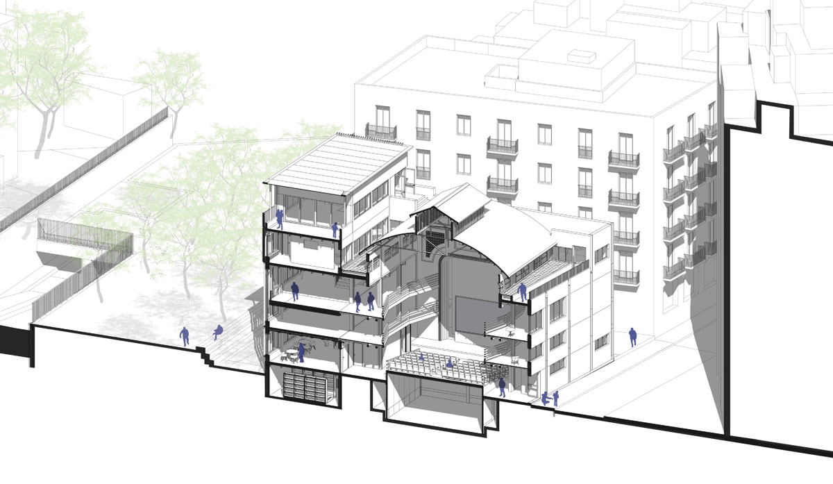 ![]() Clément DonneaudFundació del Cinema CatalàUn nouveau cœur culturel pour l’Avinguda del Paral.lelAvec la croissance démographique, une grande partie de la population ouvrière de Barcelone se rapproche des industries du quartier de Poble-Sec près du quartier historique du Raval. L’Avinguda del Paral.lel, axe majeur créé par Cerdà pour relier le port au centre-ville, est à la jonction de ces quartiers. Son urbanisation est complexe, la grandeur de ses trottoirs fait fuir les investisseurs, au profit de constructions provisoires. En dix ans, l’avenue devient une polarité culturelle. Ainsi, une vingtaine de théâtres voit le jour, dont le Salon Arnau, réalisé par l’architecte Andreu Audet I Puig dans un style noucentiste en 1903. Ce théâtre accueillera les plus grands artistes. Mais dans les années 80, des difficultés liées à la baisse de fréquentation se font sentir. L’Avinguda des théâtres laisse place au tourisme et aux logements. Le théâtre Arnau ferme. Les associations et la municipalité luttent pour sa survie. Le projet de fondation sur le cinéma catalan le repositionne à sa juste valeur d’objet historique et créateur de lien.