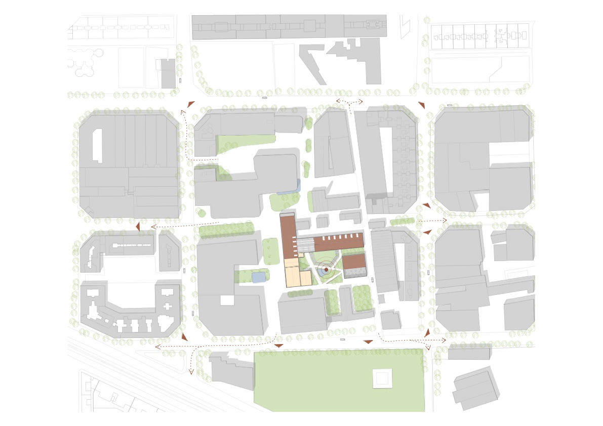 ![]() Juliette LabarreCan Ricart fait son cinémaLa renaissance d’un patrimoine industrielUne école de cinéma voit le jour dans les murs de l’ancienne usine de textile de Can Ricart, dans le quartier de Poblenou à Barcelone. L’objectif est de faire lien avec les entités environnantes, en recréant un véritable cœur d’îlot avec des centralités, des flux et des accès simplifiés. Le potentiel végétal existant est mis en valeur, afin de créer une continuité verte et une biodiversité. Plusieurs stratégies se dessinent, tant du point de vue de la conservation de l’existant, que de l’architecture créée. Concernant le “déjà-là”, l’approche consiste à le remettre en état, le réparer, afin de reconstituer l’héritage tel qu’il était connu. Entre une municipalité aux objectifs de développement et des citoyens défenseurs du patrimoine, l’idée ici est d’unifier deux architectures, deux époques et deux positions théoriques. La nouvelle architecture adopte une identité contemporaine et se juxtapose à l’existant avec précision, en suivant la trame, les volumes et les hauteurs existants, sans chercher ni à se confronter, ni à s’effacer.