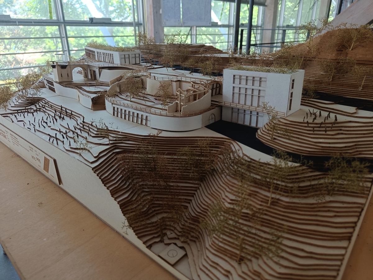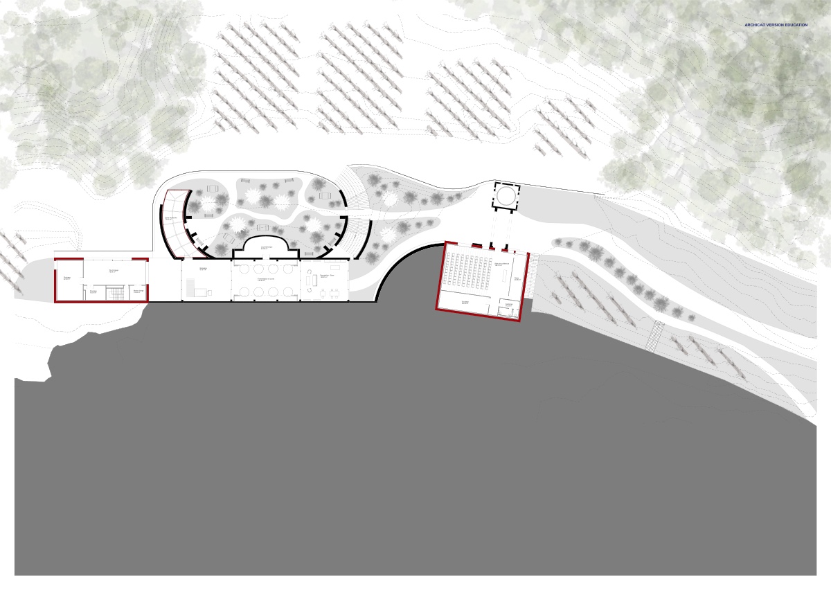 ![]() Miriam MorettiEcoCasa del Vino CatalánLa Rabassada : de la ruine isolée à l’innovation viticoleSituées dans le parc naturel du Collserola, au nord de Barcelone, les ruines du Gran Hotel y Casino de La Rabassada sont isolées, destinées à l’oubli, délaissées depuis soixante ans, malgré la grandeur du site au début du 20e siècle. Leur emplacement le long d’un axe routier majeur du parc, la vue qu’elles offrent sur la vallée, leur configuration et leurs volumes importants et bien préservés (d’anciennes galeries semi-enterrées) en font un site à fort potentiel. EcoCasa del Vino Catalán redonne vie à ces ruines par une approche inscrite dans la pente, à l’image de l’existant, venant le compléter en extension et apportant ainsi une dimension nouvelle à ses espaces autrefois destinés à rester cachés. Le programme propose un centre de recherche (laboratoires, serres, ateliers) et de formation autour de la viticulture, patrimoine important de la région, qui rencontre aujourd’hui d’importantes difficultés liées au climat. Le tout se dessine entre cheminements et espaces semi-enterrés, afin de valoriser l’aspect paysager de ce site d’exception.