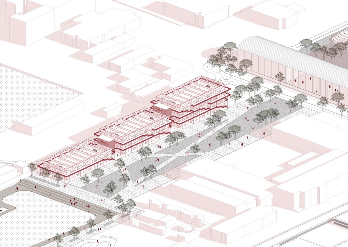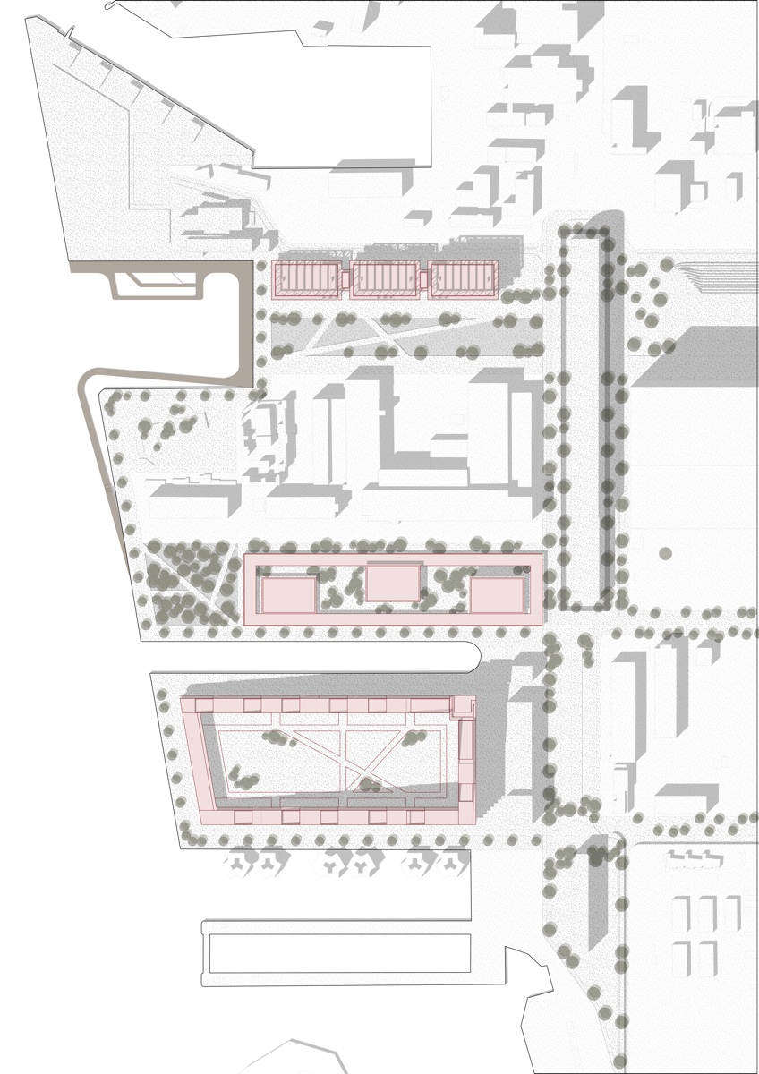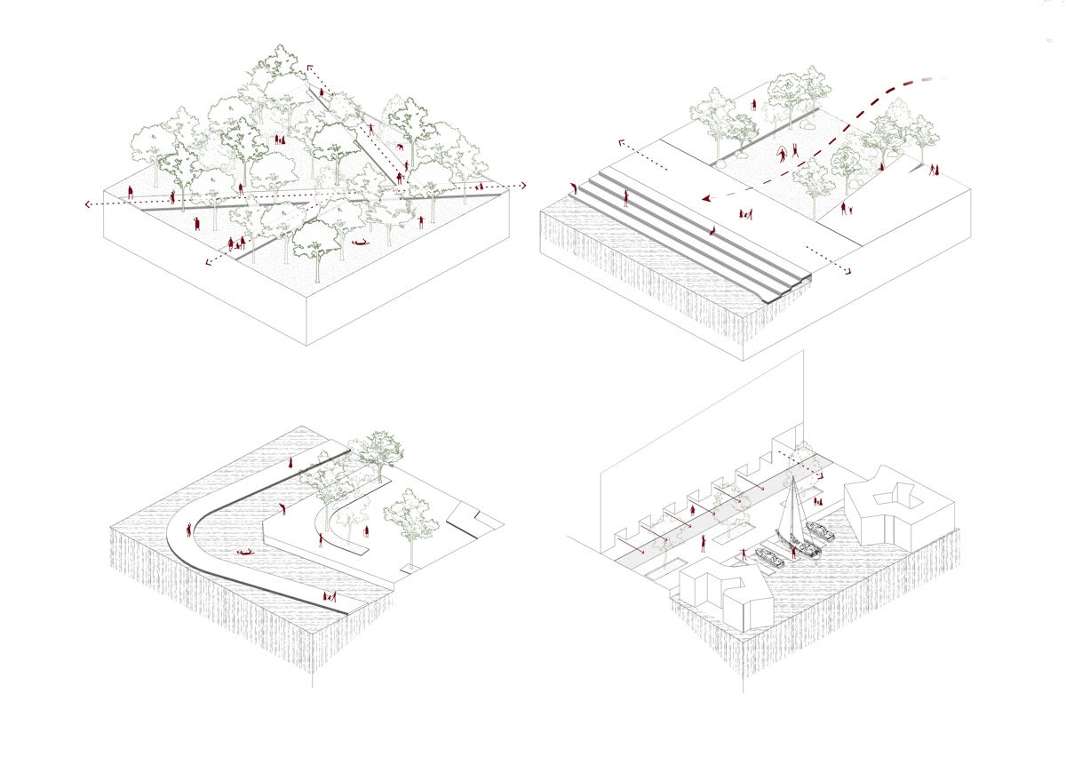 ![]() Grégory AmbardMutation de RefshaleøenDu chantier naval à l’espace public, repenser le quartier à différentes échellesMutation de Refshaleøen vise à renforcer la connexion entre les deux lignes de côtes de l’île artificielle de Refshaleøen, au Nord-Est de Copenhague. En utilisant un élément paysager fort, un merlon de 650 mètres, celui-ci permet d’initier la création d’un parc faisant le lien entre le quartier en mutation de Refshaleøen et le futur quartier de Lynetteholm. Le parc servira de lien entre les quartiers existants et en développement, tout en gérant la séparation avec les activités industrielles au nord. Le merlon agit comme une barrière protectrice et favorise l’exclusion de la voiture. Il favorise la densité urbaine concentrée, inspirée des modèles d’Amsterdam. Chaque intervention suivra un schéma Mer-Vert-Terre, offrant un accès direct à un jardin ou à l’eau, et comprendra la création d’espaces verts variés. Ils seront tous reliés à une artère principale desservant le quartier dans sa verticalité et facilitant les connexions.